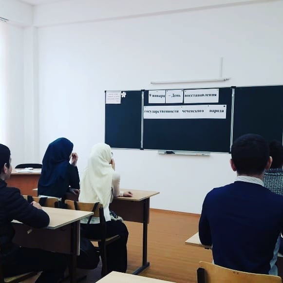 10.01.2020Мероприятие, посвященное Дню восстановления ЧИАССР9 января с целью привить любовь к родине и улучшить знания учащихся по истории родного края в 11 классе, классным руководителем, проведен классный час на тему «День восстановления государственности чеченского народа».В ходе классного часа говорили о причинах и о процессе депортации чеченцев и ингушей в 1944 году. Учащиеся были очень заинтересованы данной темой и активно участвовали в дискуссии. Они вспомнили рассказы своих бабушек и дедушек: их выселение, кто и как выживал, как возвращались на Родину и начинали жить заново