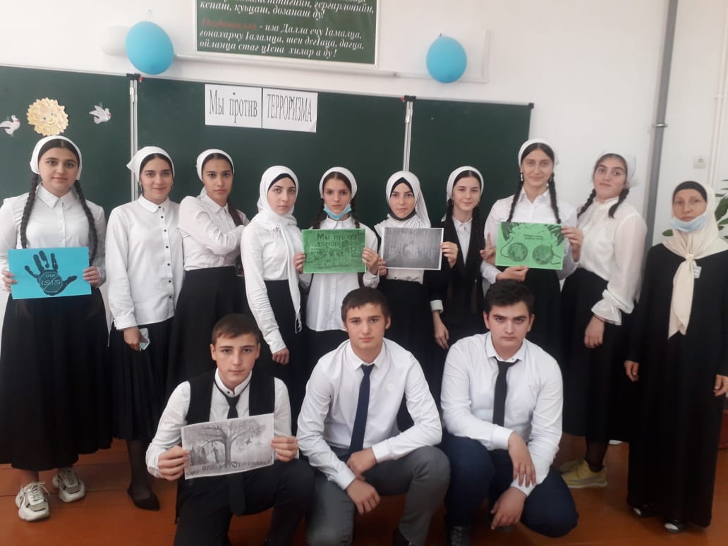 30.09.2020Классный руководитель 9 "Б" класса Бамбатиева З.А. провела классный час на тему: "Мы против терроризма". Цель мероприятия:объяснить сущности терроризма, его типы и цели; совершенствование у школьников знаний о терроризме; основ безопасности в ЧС; формирование общественного сознания и гражданской позиции подрастающего поколения.