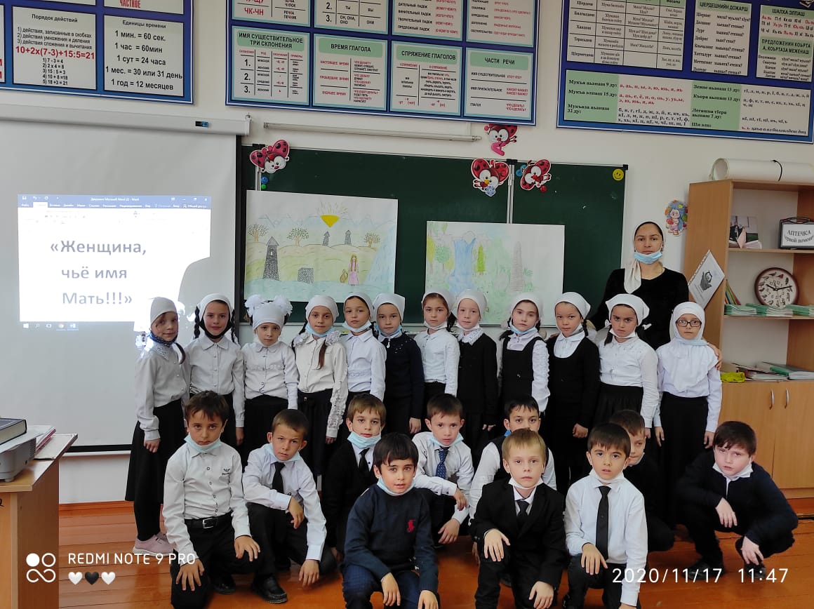 17.11.2020В МБОУ "СОШ с.п. Братское" классным руководителем 1 В класса Гезуевой Л.Р. проведен открытый классный час на тему: "Женщиеа, чье имя Мать!". Цель: развивать нравственные и духовные ценности учащихся на примере любви, уважения и почитания матери. Присутствовали на мероприятии: зав.библиотекой Умарова Б.К., педагог-организатор Эдиева М.Г.