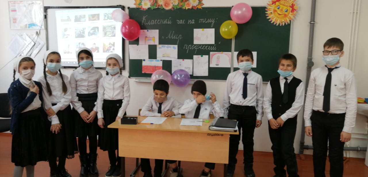 25.11.2020В МБОУ "СОШ с.п. Братское" проведен в 4 Б классе еженедельный открытый классный час на тему: "Мир профессий". Цель меррприяиия: информирование учащихся о многообразии мира профессий. На мероприятии присутствовали: педагог-организатор - Эдиева М.Г., учитель нач.классов - Гарсаева