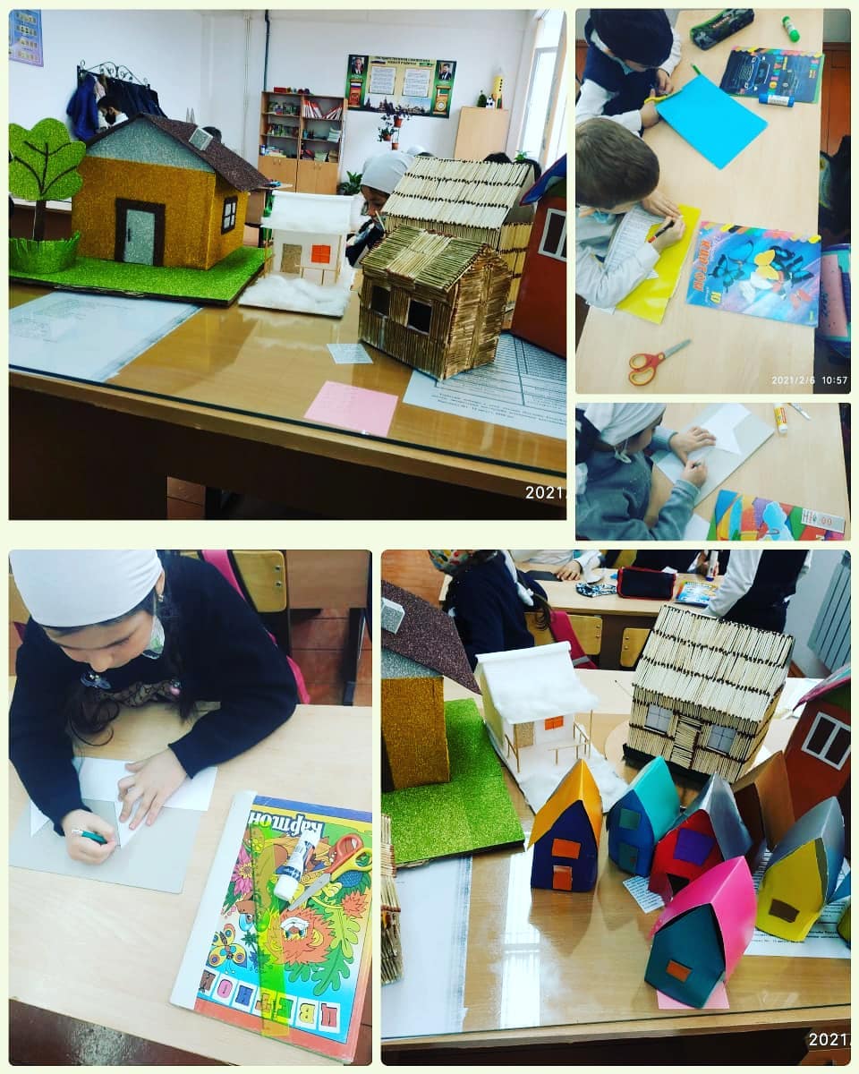 09.02.2021Урок технологии в 1"г" классе.Цель: познакомить с разнообразными видами построек, использованием различных материалов, свойствами гофрированного картона; развивать навыки работы с шаблонами; раскрыть содержание понятий «жилище», «макет».Классный руководитель Гидизова Марьям Мовладовна.