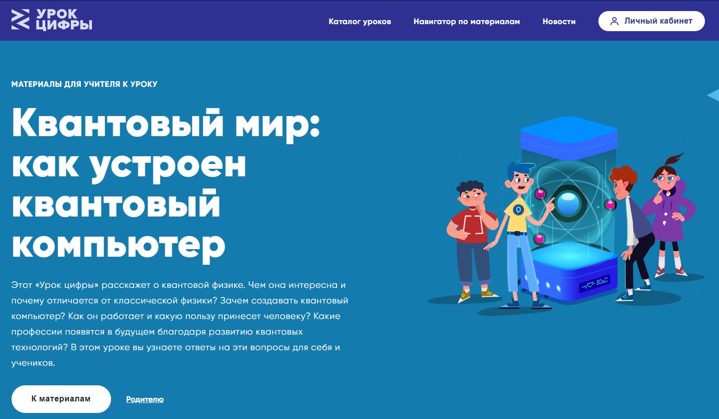 Также вы узнаете о квантовом компьютере: как он работает и какие сферы нашей жизни скоро изменит. Мы покажем, кто сейчас занимается квантовыми вычислениями и технологиями будущего.Урок проводится по материалам сайта урокцифры.рф Учебные материалы разработаны Госкорпорацией Росатом (Квантовые технологии) при поддержке Российского квантового центра и помогают ученикам познакомиться с миром квантовой физики и квантовых разработок, а также выбрать актуальную профессию будущего.