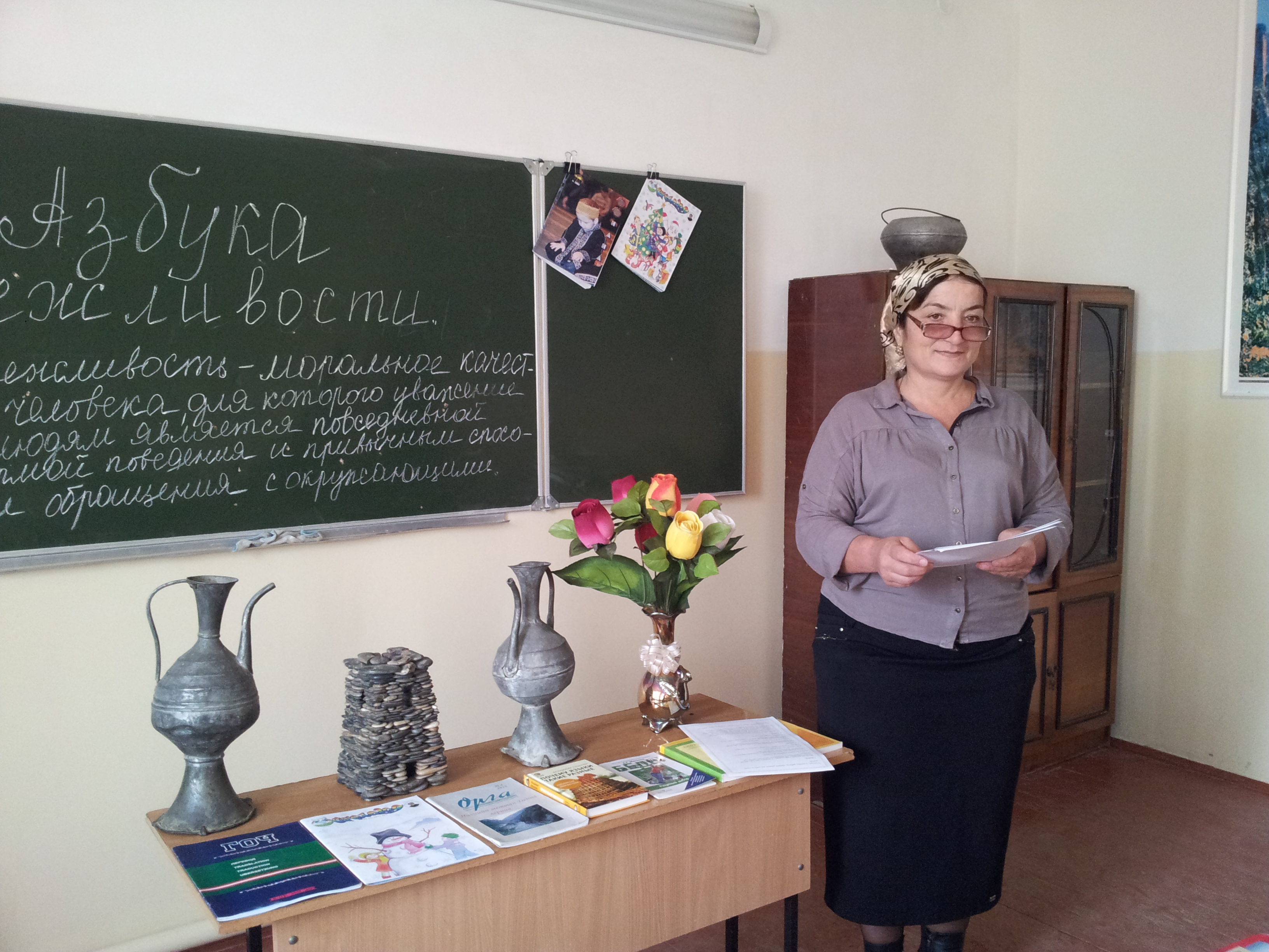 12.03.201511 марта в МБОУ «СОШ с.п. Братское Надтеречного муниципального района ЧР» классный руководитель 7 В класса Мурадова З.И. провела классный час на тему: «Азбука вежливости или этикет на каждый день».