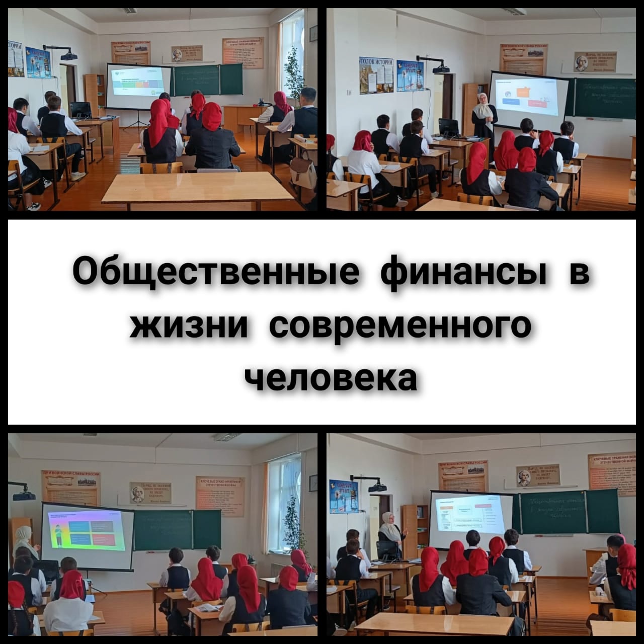 Учитель истории и обществознания Эсмерзоева Хедижат Исаевна провела урок по финансовой грамотности в 9 "д" классе на тему: "Общественные финансы в жизни современного человека"