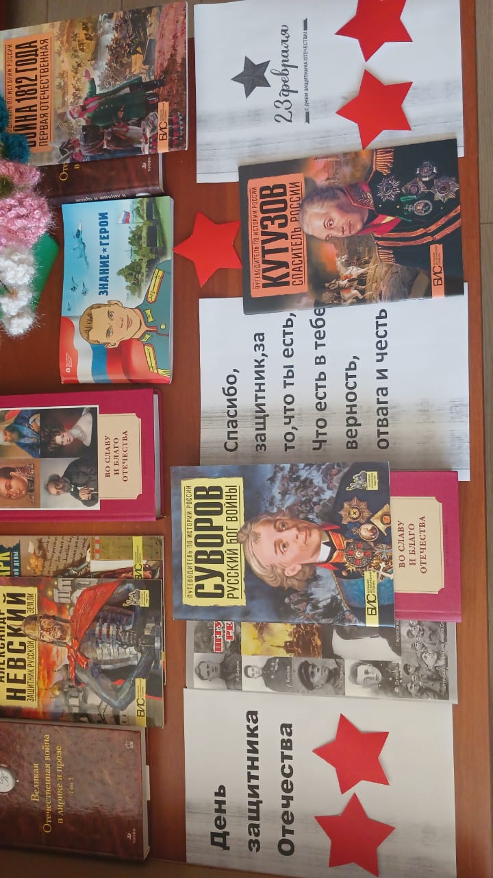 25.02.2026День защитника Отечества. Выставка, посвященная защитникам Отечества.Библиотекарь МБОУ "СОШ4 с Гехи" Амерханова Л.М. проводит последовательно работу по духовно - нравственному воспитанию подрастающего поколения.