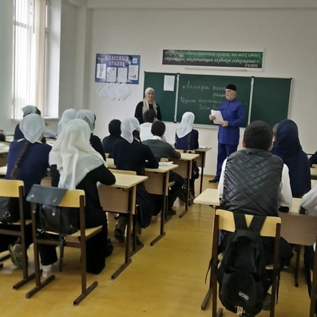 Классный руководитель 8 "Б" класса Умарова А.Э. вместе с педагогом-организатором по ДНВиР Темирбулатовым Р.А. провела классный час, посвященный к Дню рождения Пророка Мухаммада (с.а.в.)